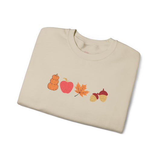 Embroidered Crewneck Sweatshirt - Thankful Autumn Gratitude Stitched Pullover