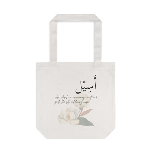 Elegant Arabic Cotton Tote Bag | Customizable Name Tote in Black or White